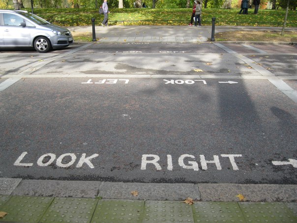 Поначалу перед каждым перекрестком мучительно вспоминаешь, куда сначала нужно смотреть – налево или направо. Хорошо, что англичане подписывают cвои дороги и переходы. На асфальте огромными буквами белой краской написано «Посмотри налево» или «Посмотри направо». Через пару дней привыкаешь ходить, как здесь принято.