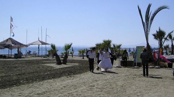 "Застукала" молодоженов на средиземноморском пляже в Ларнаке. По бурому песочку можно узнать, если кто сходу разбирается в пляжах : )