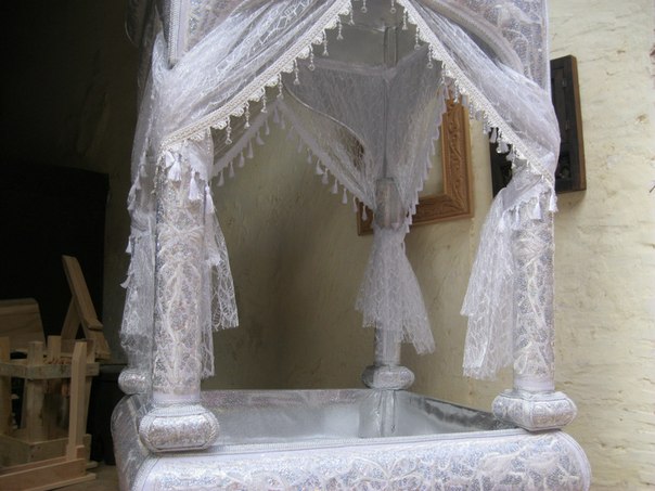 Когда я побывала в Фесе, этои ирреальном средневековом городе, то там в закоулочках набрела на Еврейский квартал, а в нем - мастерскую по изготовлению как раз таких свадебных носилок.