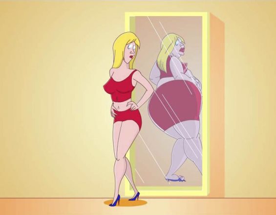 И вот эти девушки часто смотрят в такое малюсенькое зеркало, в котором видно только кусочек лица. А раздеться перед зеркалом, посмотреть на себя целиком спереди, сзади и сбоку, — это из ряда пыток!